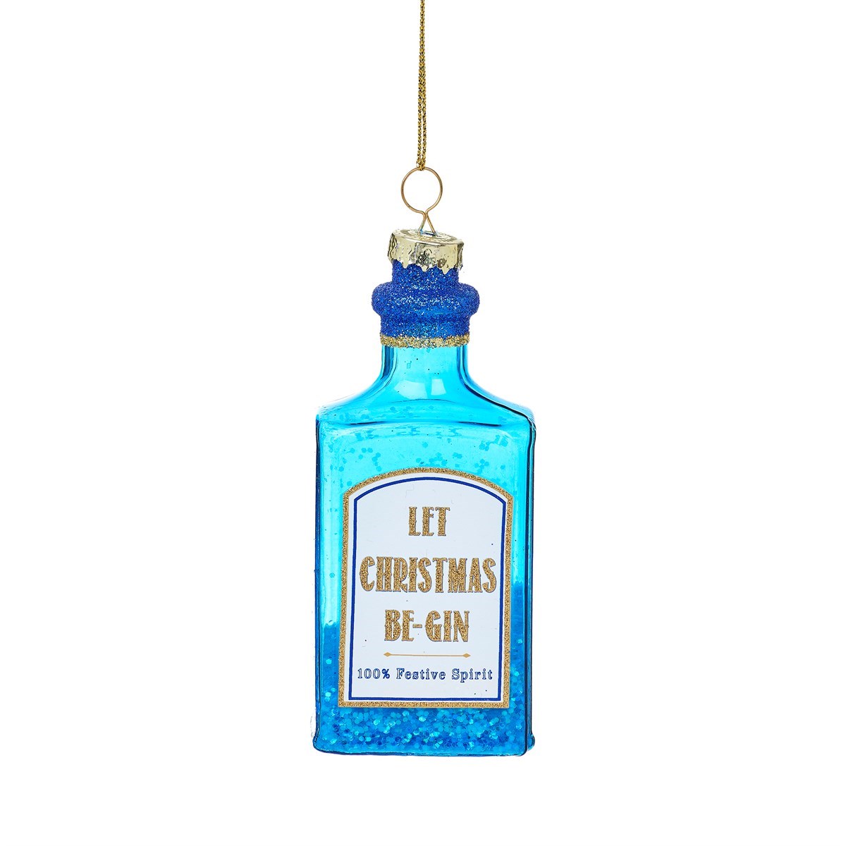 Kick start the Christmas cheer with a tipple of our blue gin bauble. Featuring a sapphire blue colourway with glimmers of sparkle and the quote 'let christmas be-gin'.