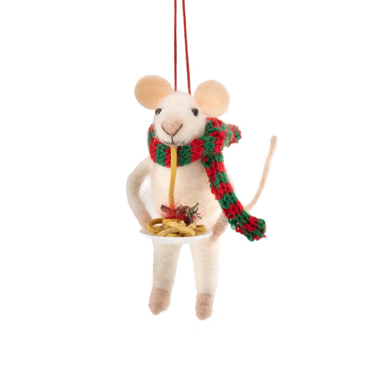 Mouse Eating Spaghetti Felt Decoration brings humorous character, presenting a mouse eating spaghetti felt decoration, perfect for playful festive décor and novelty styling.