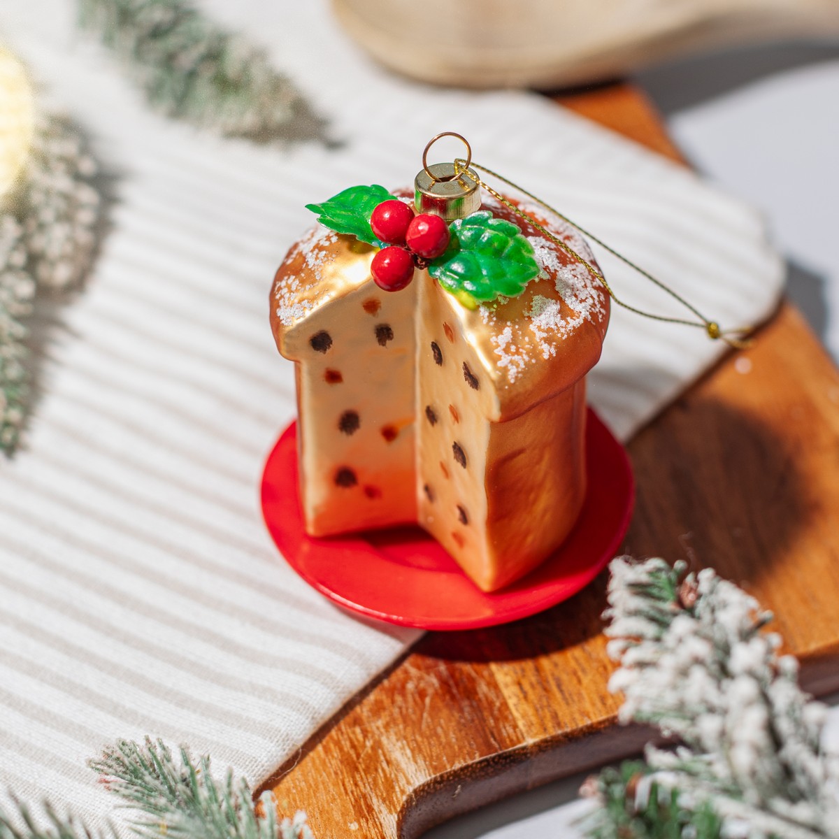 The festive Panettone Shaped Bauble honours Italian Christmas tradition with golden tones and detailed wrapping, adding delicious seasonal charm and a sweet nod to holiday treats.