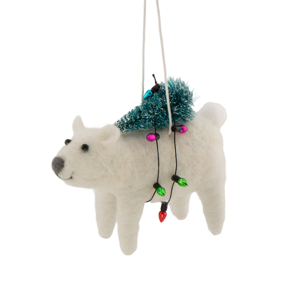 Polar Bear with Christmas Lights Felt Decoration showcases a polar bear with Christmas lights felt decoration, ideal for winter themed festive displays and playful Christmas décor.