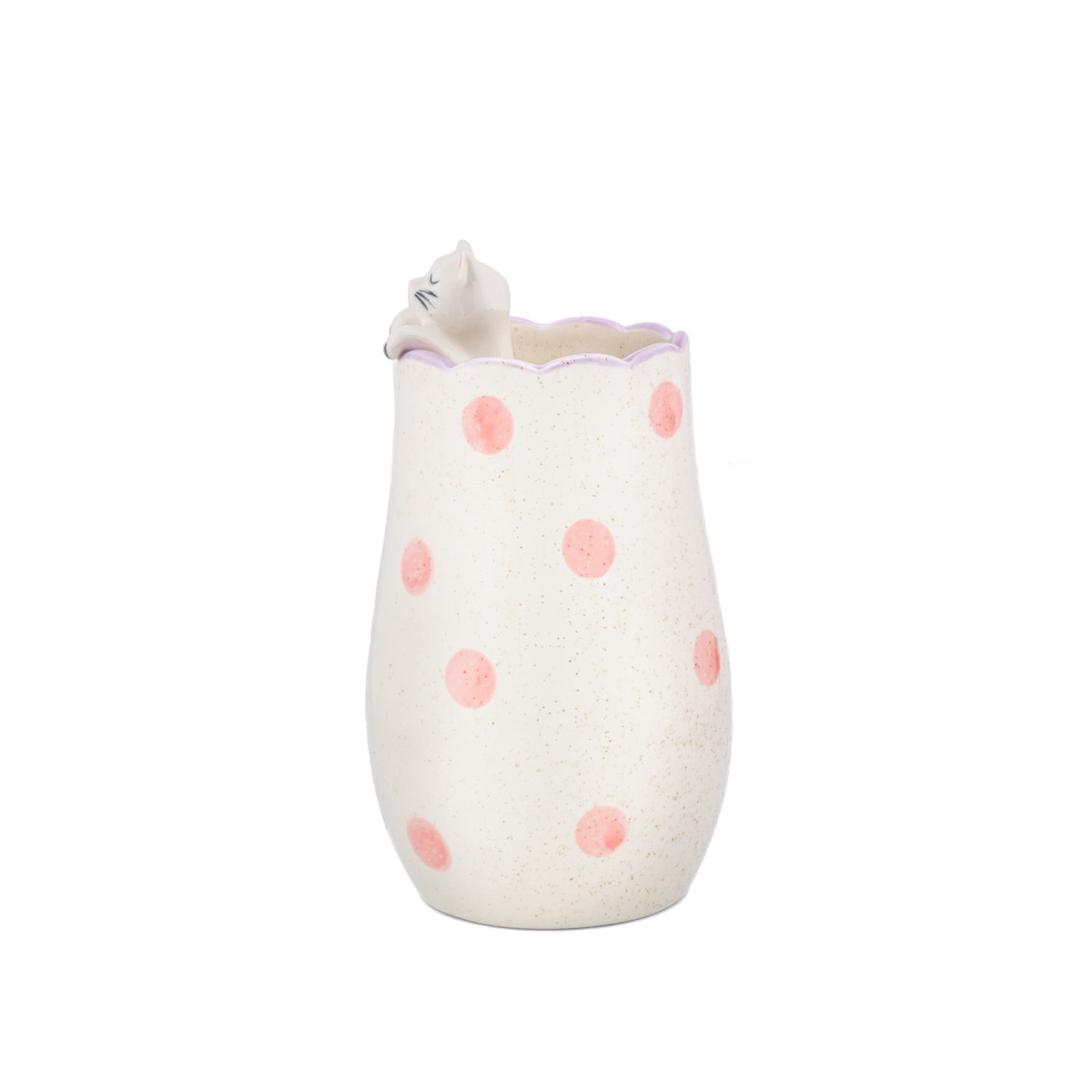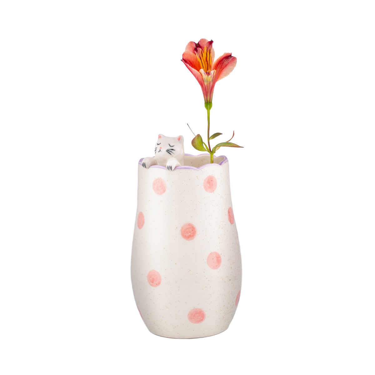 The Peeking Cat Vase features an adorable creature peeking over the side, making it a playful addition to your kitchen. Perfect for animal lovers who appreciate quirky designs.
