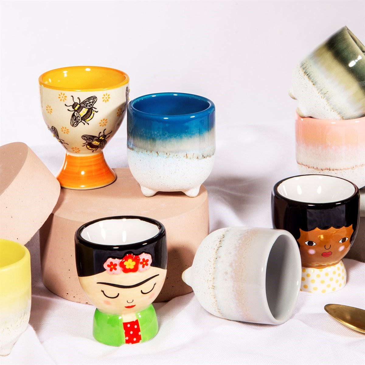 Fall in love with the boho style and ocean blue colourway of this little egg cup. The rustic texture and dip ombre effect are created from the reactive glaze which forms subtle variations in colour tones, making each one beautifully unique. Completed with a gloss finish.