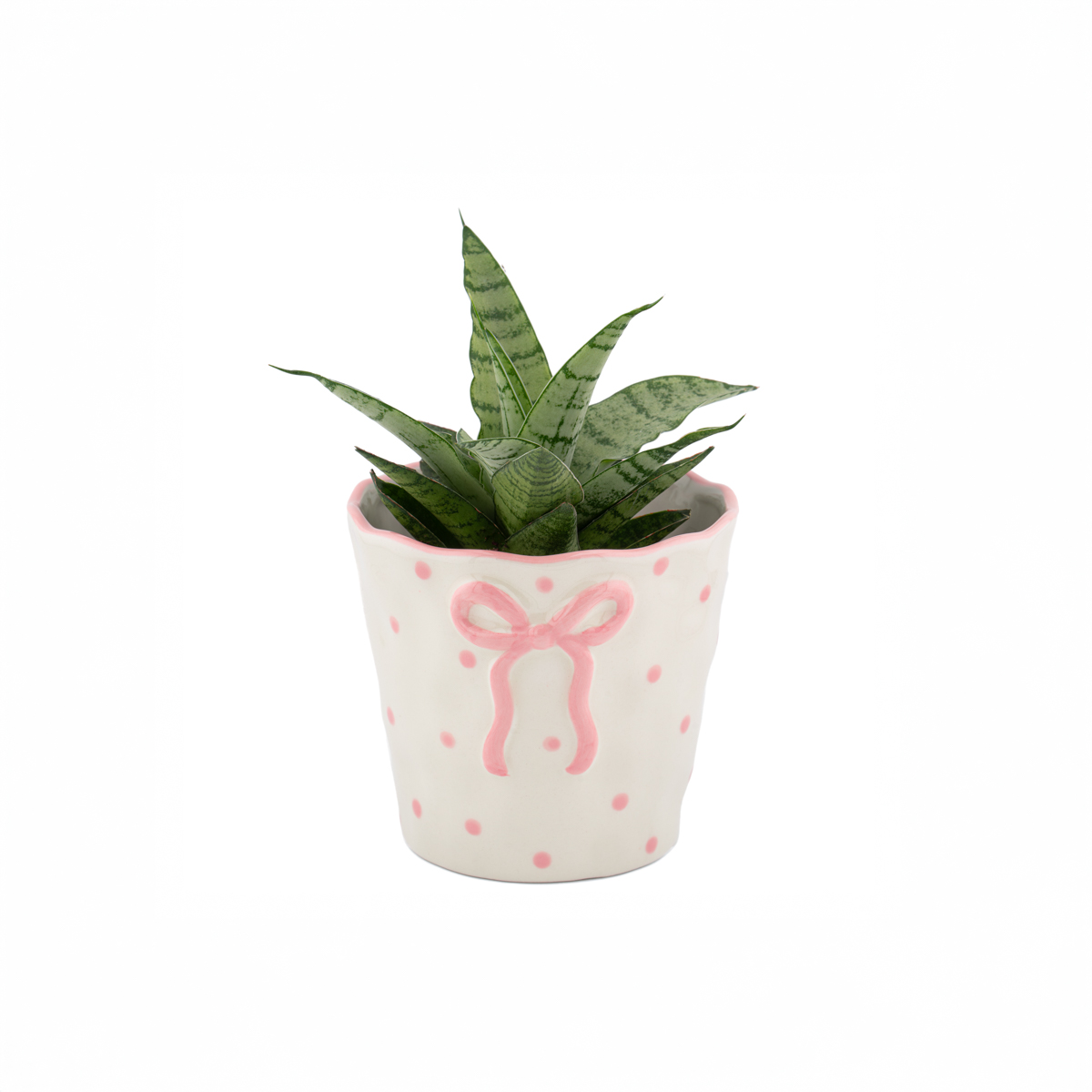 Add greenery to your space with the Bow Planter, a small ceramic pot accented with a stylish bow, perfect for succulents or small plants.