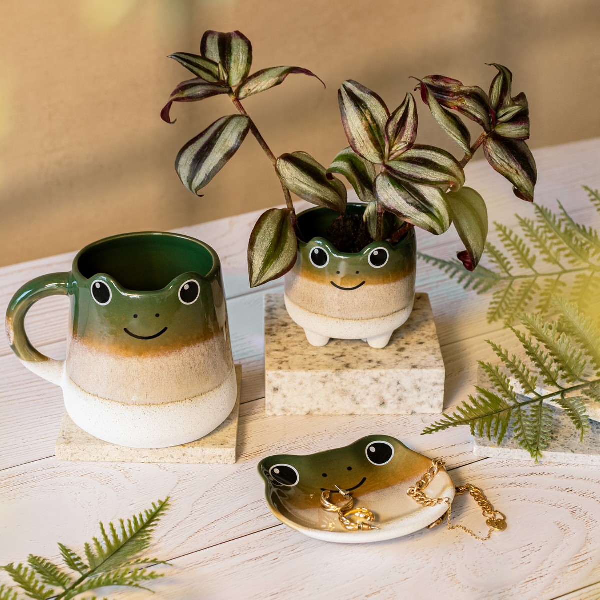 The Mojave Frog Trinket Dish features a charming frog design in ceramic, ideal for keeping rings, trinkets, or keys organised with woodland style.