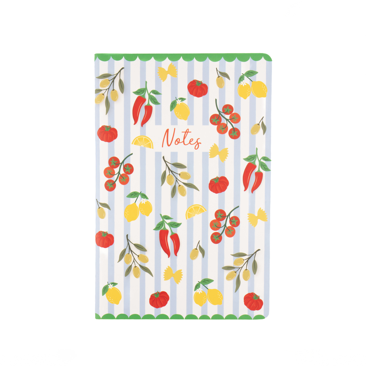 The durable Mediterrranean A5 Notebook is a great way for customers to keep track of their to do lists, with fun foodie motifs.